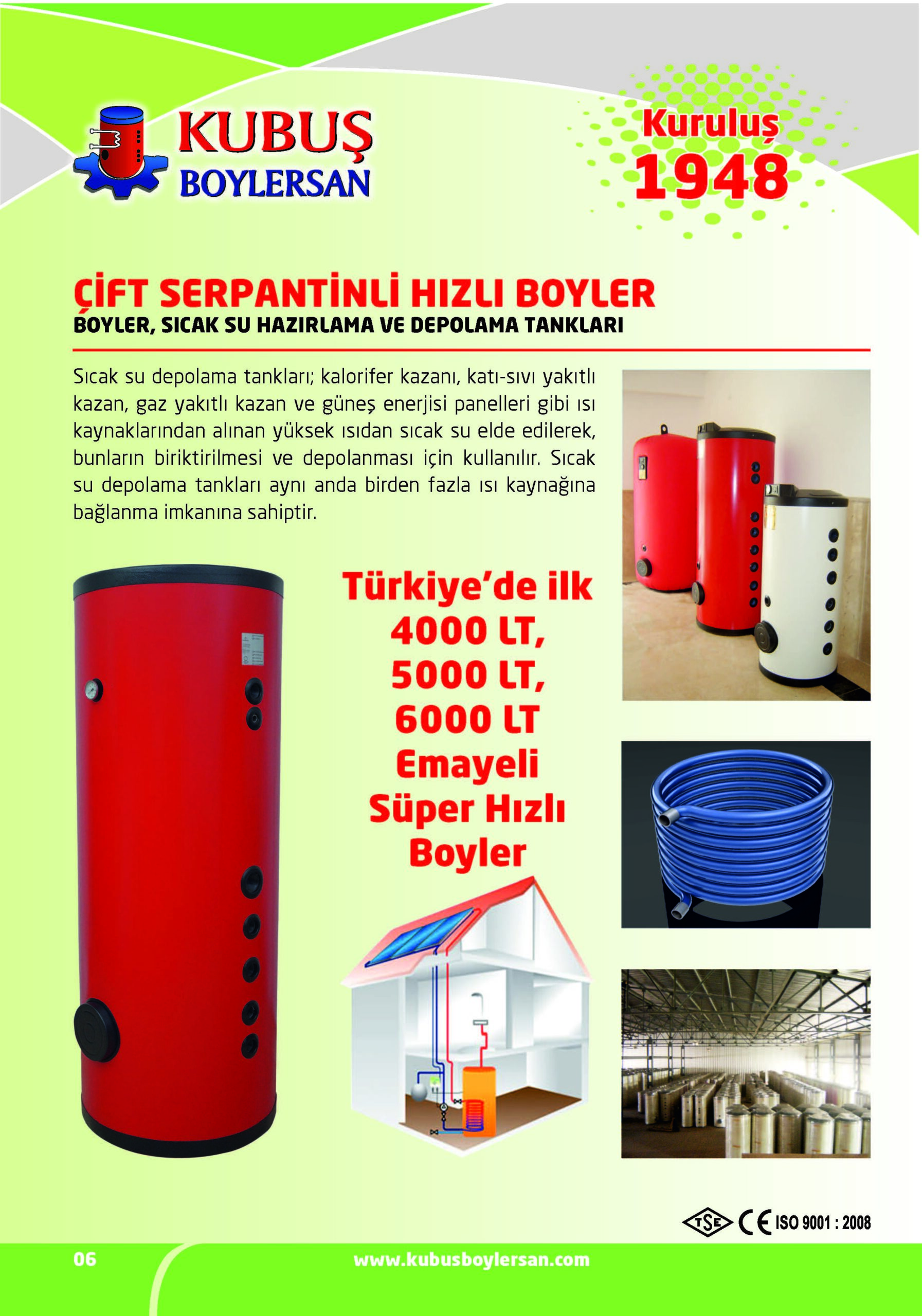 Sıcak su depolama tankları; kalorifer kazanı, katı – sıvı yakıtlı kazan, gaz yakıtlı kazan ve güneş enerjisi panelleri gibi ısı kaynaklarından alınan yüksek ısıdan sıcak su elde edilerek, bunların biriktirilmesi ve depolanması için kullanılır. Sıcak su depolama tankları aynı anda birden fazla ısı kaynağına bağlanma imkanına sahiptir.