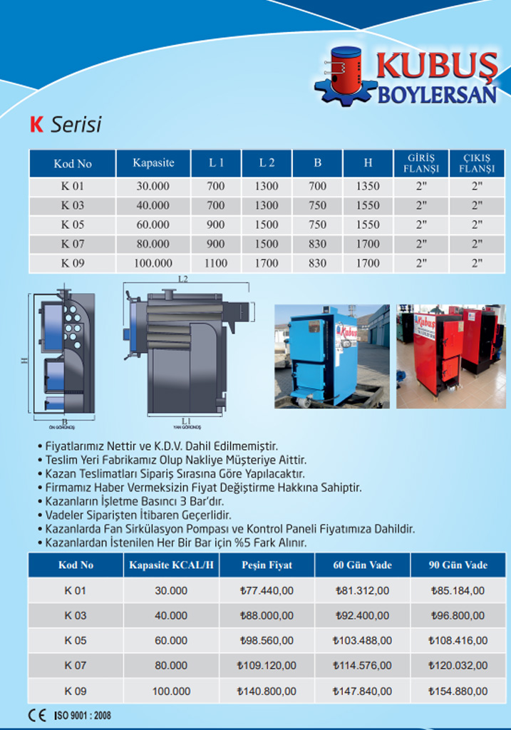 - Kalın ve çelik sacdan imal edilmiştir. Diğer kazanlara göre ağırdır, kat kaloriferi değil kalorifer kazanıdır. Arasındaki fark malzeme et kalınlıklarıdır. Emsallerine göre 2 kat daha uzun ömürlüdür.