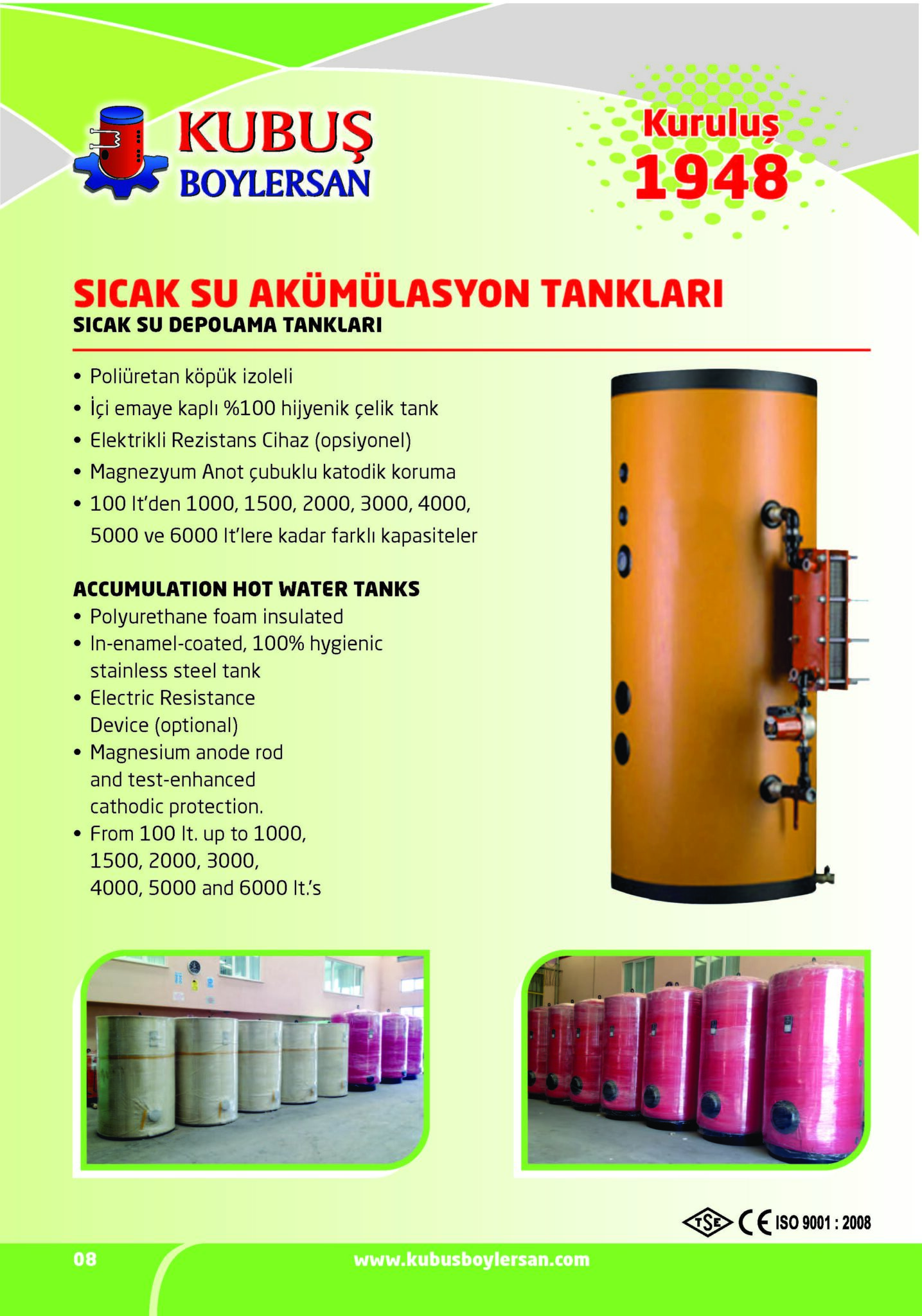 - 100 lt’den 1000, 1500, 2000, 3000, 4000, 5000 ve 6000 lt’lere kadar farklı kapasiteler